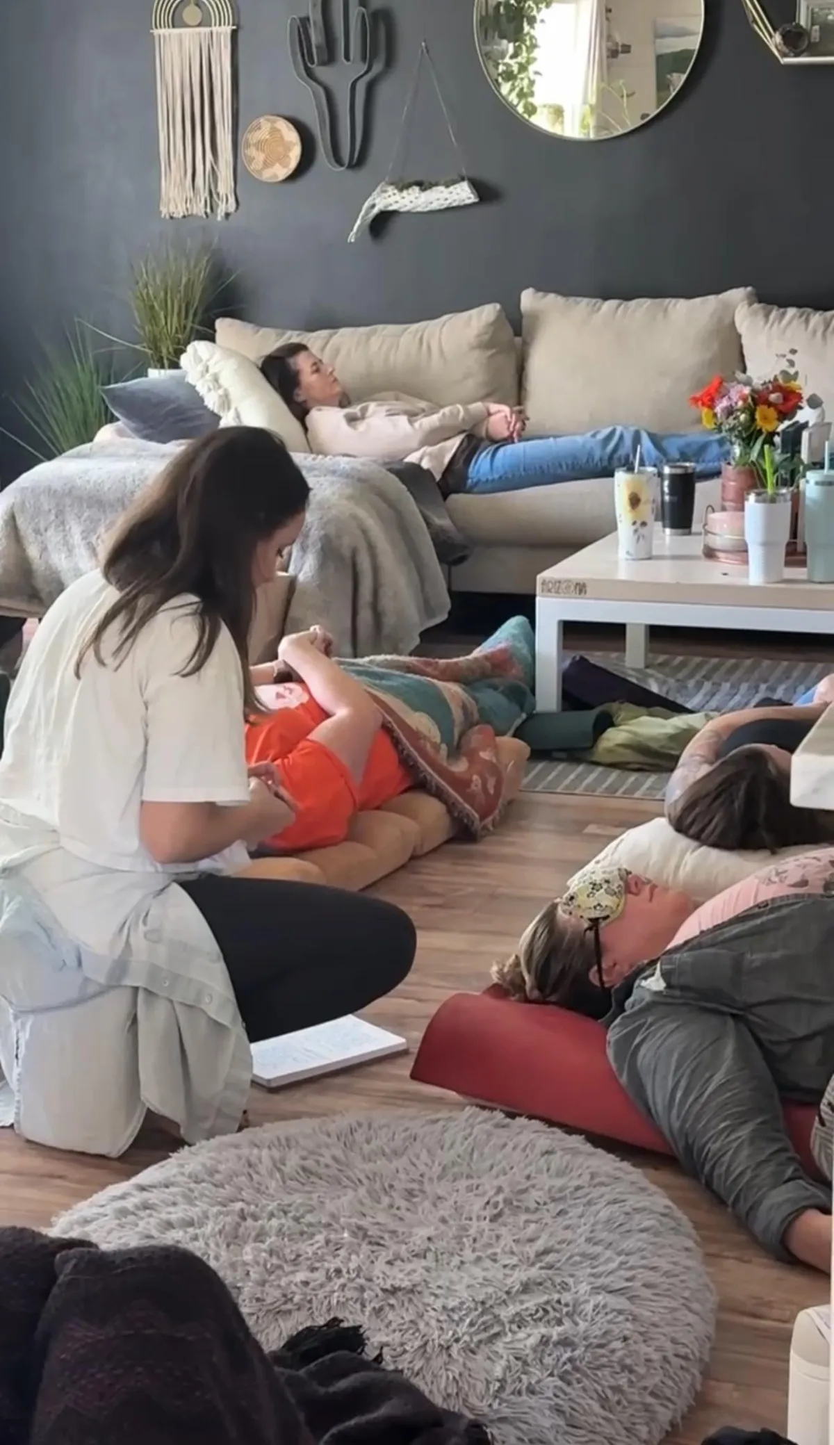 This isn’t just relaxation — it’s a full-body recalibration. The sound bath helps integrate everything we’ve uncovered during the circle so it settles into your body with softness and clarity.